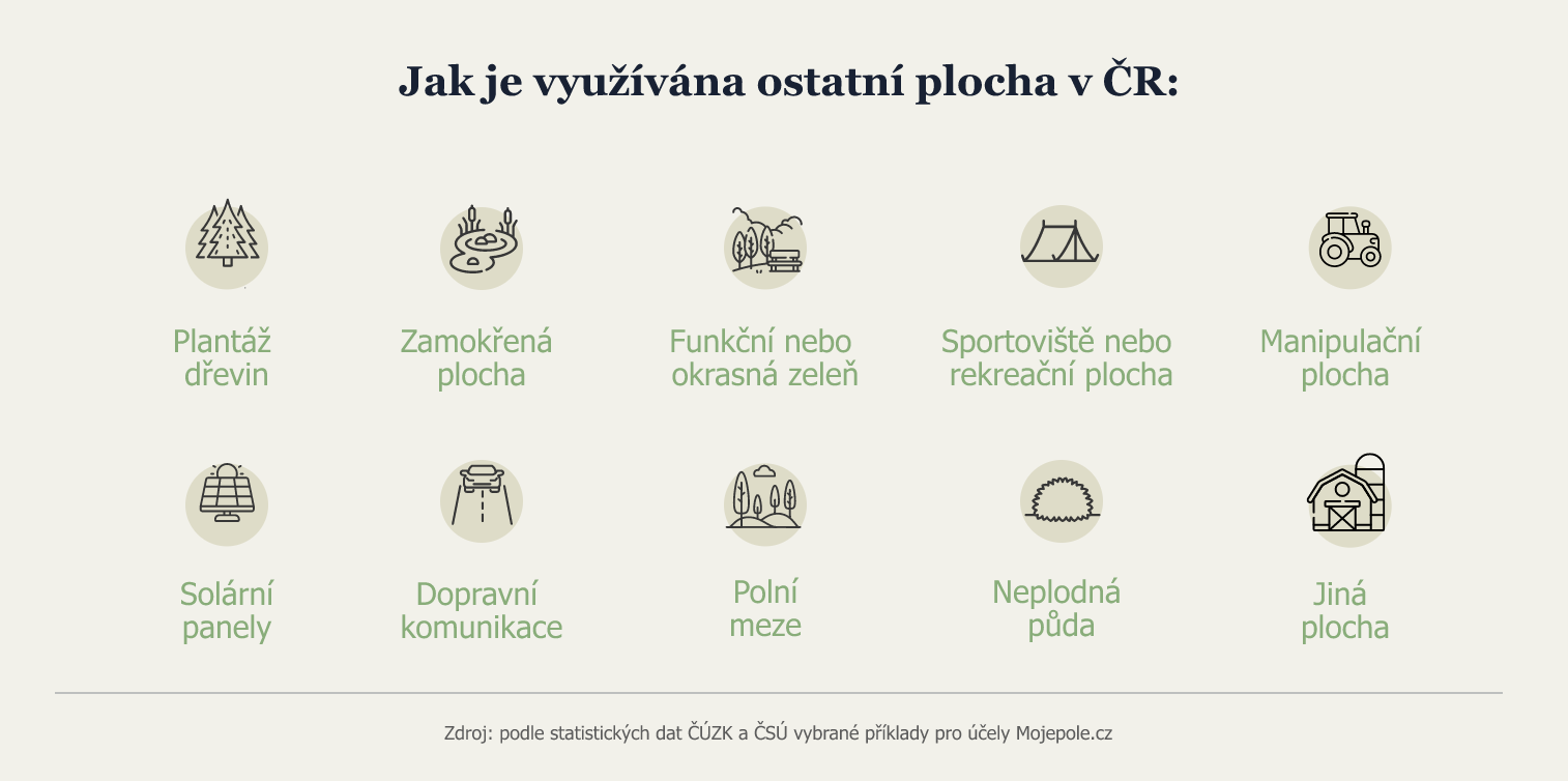 Na druhou stranu - jako součást zemědělského půdního fondu smí být zemědělská půda využívána jen pro účely, které povoluje nebo přímo nezakazuje platná legislativa. A to je primárně zemědělská produkce. Ale i zemědělské pozemky mohou mít široké využití - ne na veškeré půdě, je totiž možné pěstovat pšenici, řepku či kukuřici. Spousta pozemků z ozdravných důvodů leží ladem, jejich další část z hlediska bonity není vhodná pro pěstování a tvoří ji trvalé travní porosty, tedy louky či pastviny. Ty se mnohdy nacházejí v krásných podhorských a horských oblastech a kromě pastvy svádějí k rekreaci. Další část půdy je klasifikována jako ostatní plocha - její využití může být různé. V blízkosti produkčních ploch na ni zemědělci umisťují logistické stavby a prvky, plní významné ekologické funkce jako domovy pro hmyz a bohatou vegetaci anebo jsou využívány pro rekreační a sportovní účely.